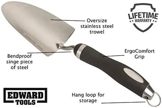 These trowels have high strength while remaining light-weight. They have a one-piece construction, and the blade stays attached to the handle. It is perfect for digging into hard and compact soil. It will not rust and is easy to clean.